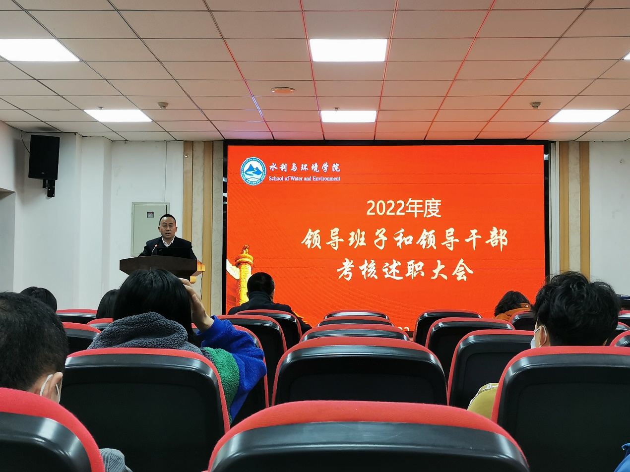 为进一步加强学院领导干部队伍建设,3月22日晚,beat365正版唯一官网组织召开2022年度学院领导班子和领导干部考核述职大会,学校考核指导组成员刘欣到会指导。学院全体教师参加会议,会议由院党委书记邓红章主持。