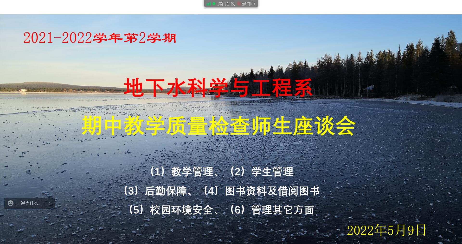 为进一步加强日常教学管理,全面了解在校园疫情防控新形势下广大学生对学校、学院、系室在教育教学、管理服务等方面的意见和建议,及时发现和处理教学各环节存在的问题,根据《beat365正版唯一官网期中教学质量检查实施办法》(长大教〔2012〕296号)文件精神,地下水科学与工程系于5月9日下午,利用腾讯会议召开了2021-2022学年第二学期期中教学质量检查师生座谈会,学院副院长李培月、专业责任教授乔晓英、地下水系主任黄文峰、地下水系教师代表及本科四个年级的学生代表共计30余人参加本次会议。