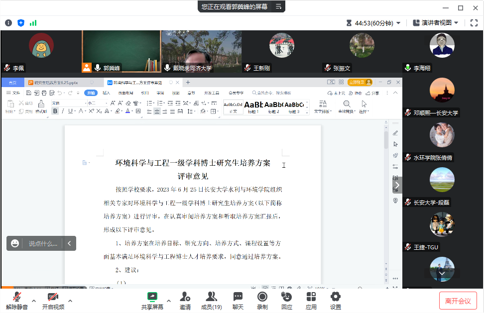与会教师逐一回应了各位专家所提出的意见和建议,并表示将认真听取各位专家的意见和建议,进一步完善培养方案。此次会议的召开将有助于对环境科学与工程博士和硕士学位点的发展及研究生培养质量的提升,同时对于规范研究生教育管理,提升教育教学质量,推动学科发展具有重要意义。
