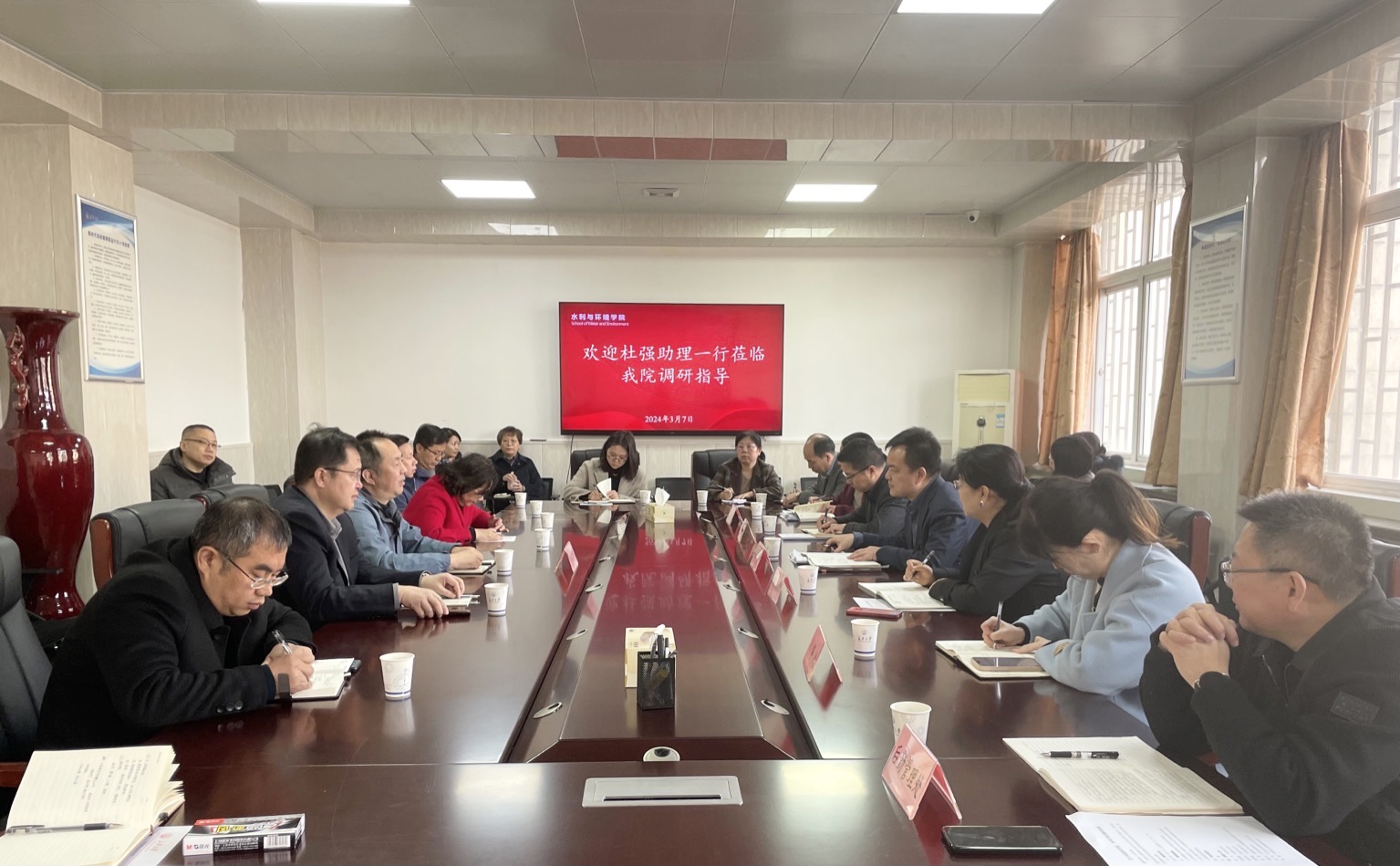 3月7日,校长助理杜强带队来beat365官网进行狠抓开源节流持续强化资金筹措能力专题调研座谈,学院党委书记张骞文、院长白波参加座谈会。