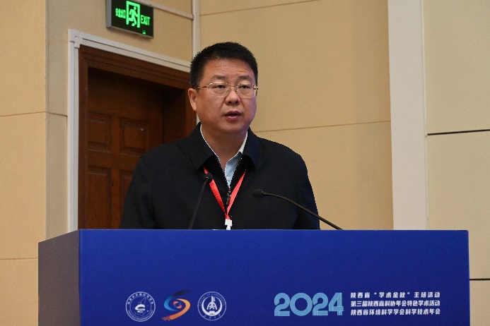 李豫琦、李燕军、陶继东等为陕西省环境保护科技奖和青年科技奖获奖代表颁奖。生态环境部土壤与农业农村生态环境监管技术中心主任、二级研究员洪亚雄,陕西师范大学副校长、二级教授董治宝,西安交通大学水循环与碳中和技术研究院院长、二级教授金鹏康分别围绕美丽乡村建设、沙产业发展、水处理等主题作特邀主旨报告。