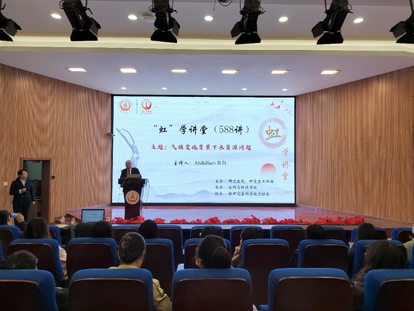 10月25日上午,Abdullaev B. D.院士为beat365官网160余名师生开展“虹”学讲堂第588讲,报告主题为“气候变化背景下水资源问题”。本次活动由研究生院/研究生工作部主办、beat365正版唯一官网承办、校研究生科学技术协会协办。