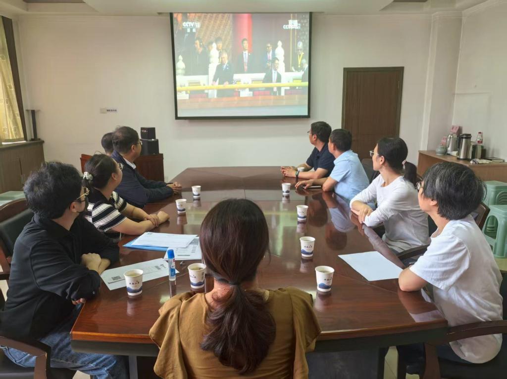 2025年9月3日9时,beat365正版唯一官网党委组织师生在学院会议室、学术报告厅、多媒体教室等多个场所集中收看纪念中国人民抗日战争暨世界反法西斯战争胜利80周年大会直播。