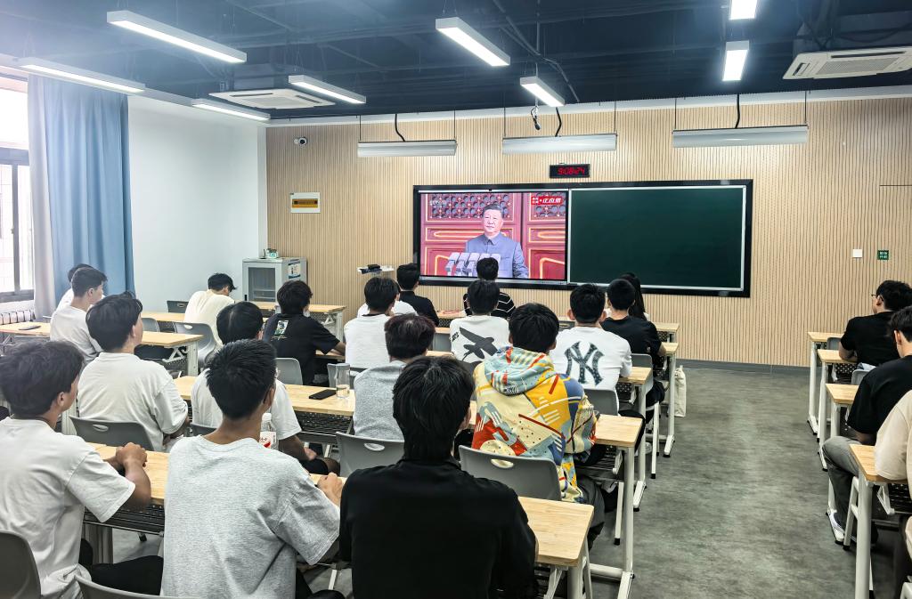 观看过程中,师生全神贯注、心潮澎湃,不时因阅兵盛况报以热烈掌声。当步伐铿锵、斗志昂扬的受阅方队整齐行进时,会场一次次响起由衷的赞叹。我国自主研制的一系列新型武器装备集中亮相,充分彰显国家强大的国防科技实力和综合国力,深深激发了师生的民族自豪感与自信心。