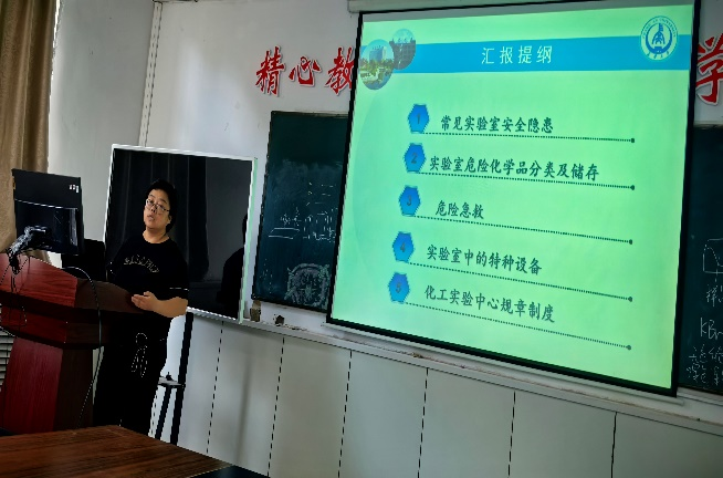 化工实验中心主任陈志红老师为新一届研究生介绍了化工实验平台的具体情况,并对实验室相关制度进行了解读,叮嘱学生在完成学业的同时,要注意自身安全与实验室安全。化工党支部书记吕向菲老师对新入学的2024级研究生表示热烈欢迎,对大家今后的三年研究生提出要求和期望,鼓励大家积极探索,在学业上有所追求,争取更大的进步。化学工程与技术学科的研究生培养,离不开实验,吕向菲老师从常见实验室安全隐患、实验室危险化学品分类及储存、危险急救、实验室中的特种设备、化工实验中心规章制度等五个方面为新入学的研究生进行了系统详细的讲解。