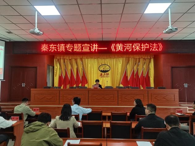 地下水系党支部书记王疆霞为秦东镇青年干部作了以“让黄河成为造福人民的幸福河——谱写黄河流域生态保护和高质量发展新篇章”为主题的汇报,阐释了黄河流域在生态社会经济发展的重要地位,介绍了《中华人民共和国黄河保护法》的特色,指出了黄河水资源现状及存在问题,强调了“黄河宁,天下平”,贯彻落实黄河流域生态保护和高质量发展国家战略既是攻坚战,也是持久战。