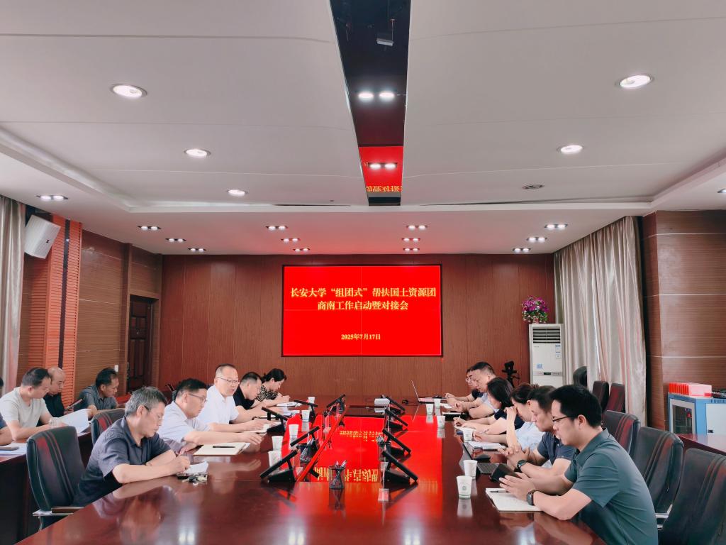 717日上午,地测学院、资源学院、beat365正版唯一官网领导班子成员和青年骨干教师等一行15人作为国土资源团代表在商南县召开工作启动暨对接会。会议由商南县副县长王重良主持,学校挂职干部、商南县副县长马飞,自然资源局、应急管理局、生态环境分局等各局局长及干部参加了座谈。