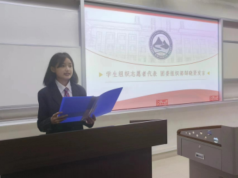会议伊始,学院党委副书记王妍对全体学生组织志愿者表示热烈欢迎,并发表寄语。简要总结上一学年学生组织的各项活动,她强调学生组织要提高政治站位,秉持组织信念,强化学习能力,希望学生组织能够从“思想引领”、“文化引领”、“行为引领”、“成果引领”四个方面带领全院学生成长成才,奋力前进,再创学生组织辉煌成绩。