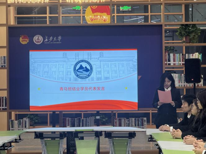 在青马班结业仪式上,姚晓艳作为青马班结业学员代表进行发言。她指出结业不是终点,而是新的起点,承诺在今后会继续秉持青马班所培养的坚定信念,做到勤学善思,在学习和工作中勇担重任,以实际行动践行青年担当,发挥青马学员的模范带头作用。
