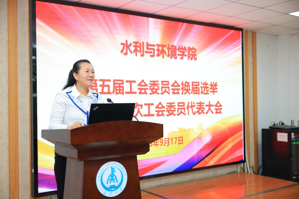 校工会副主席马艳梅致辞,她对学院党政领导及全院教职工对工会工作的重视和支持表示感谢,充分肯定了学院工会在民主政治建设、维护职工权益、活动参与中所获的成绩,并预祝本次换届大会圆满成功。